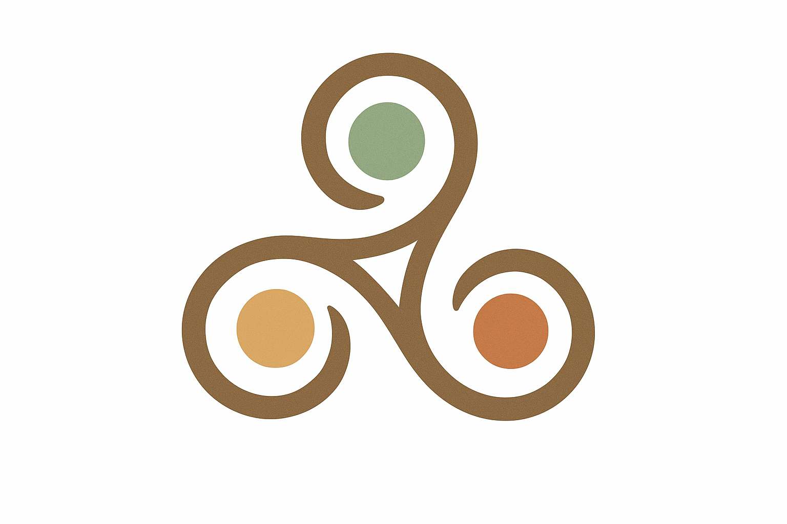 Die drei farbigen Punkte in der Triskele stehen symbolisch für meine Hauptbereiche.